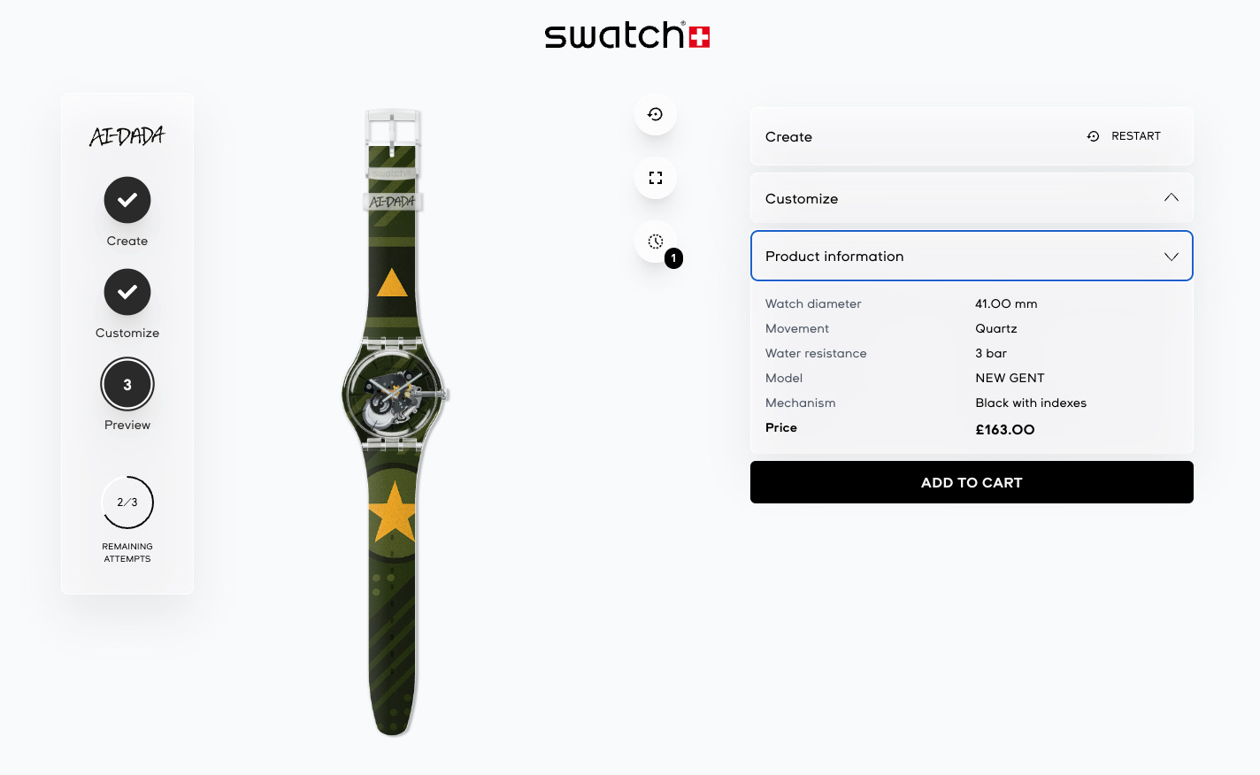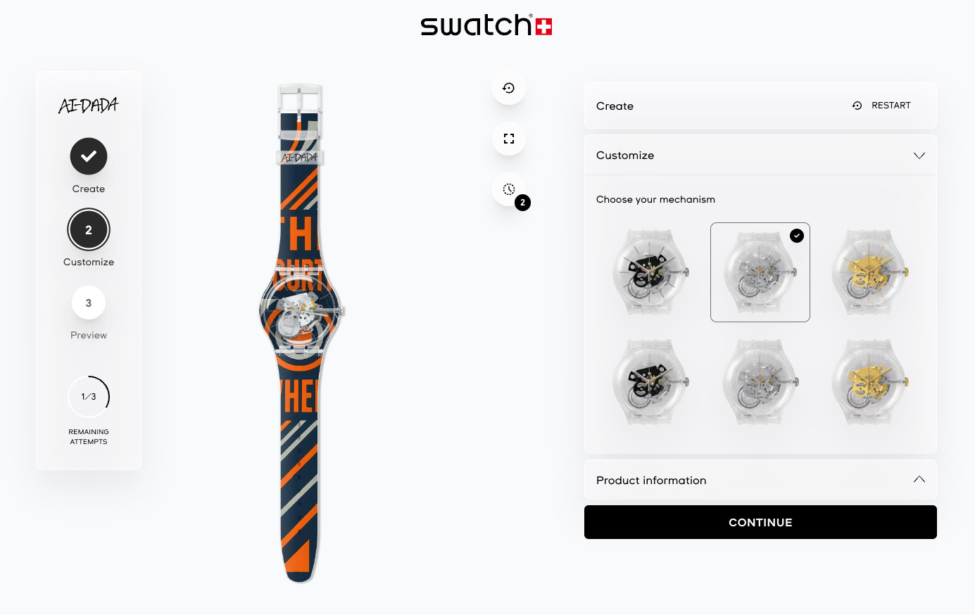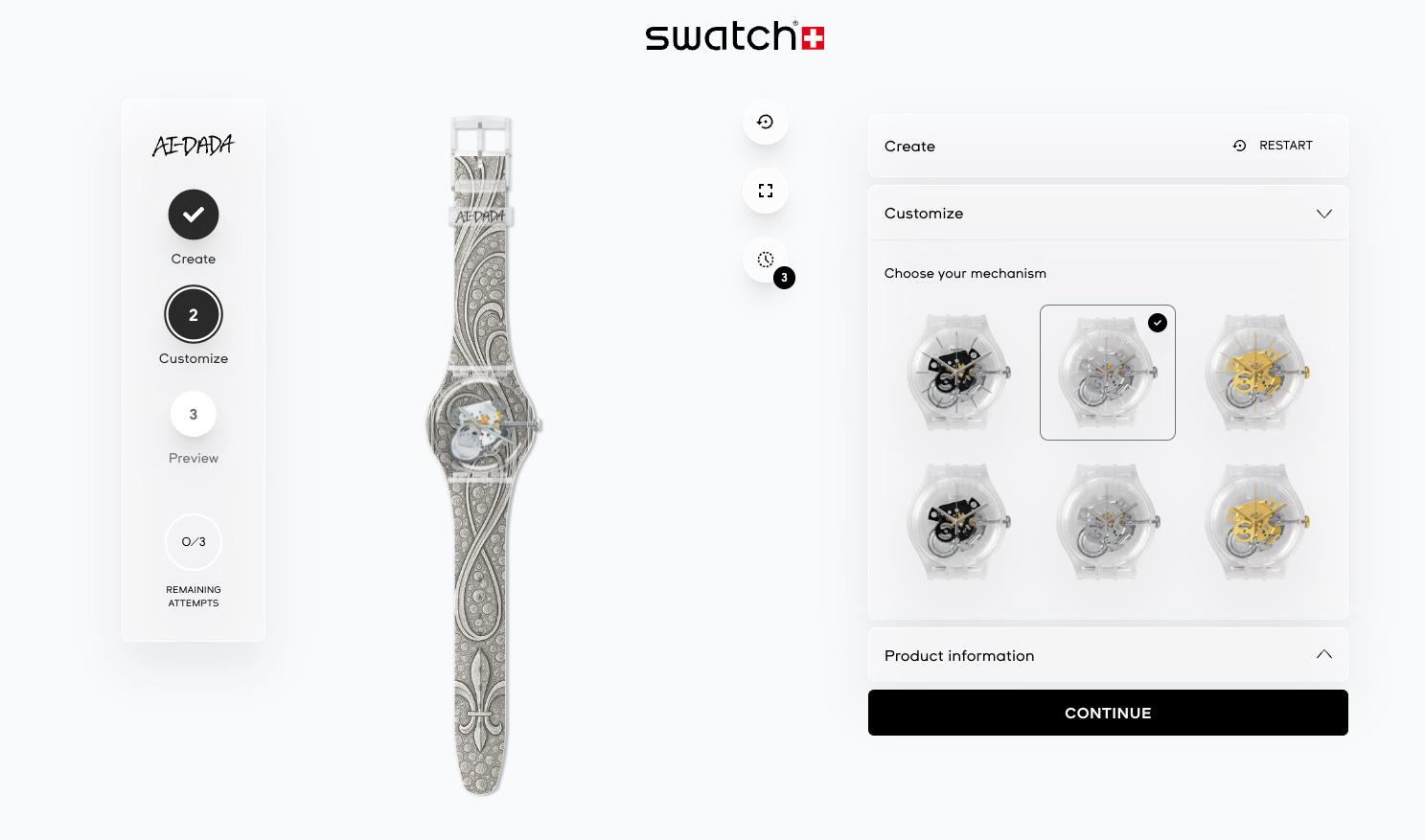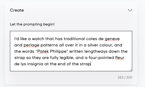 Uh-oh! You can’t make a Patek Philippe Swatch, of course. The terms and conditions expressly forbid it (oops). I could have been more descriptive of the Calatrava Cross that I wanted, as well - but what interests me is that it totally failed to interpret Cotes de Geneve and perlage - there’s no sign of the former and for the latter I’ve got a kind of shagreen effect instead. These aren’t protected designs; maybe they aren’t in the AI’s dataset, but if that’s the case, how did it know that perlage means ‘lots of little circles’ at all? Swatch’s claim is that AI-DADA is trained on 40 years of Swatch designs, and we should not underestimate how varied a dataset that is - but the experience of using it doesn’t make me feel like the image generation is constrained by some Swatch-brand-approved guiding principles, more that it is exactly as capable as a generic AI tool. Still, it’s great for mucking about, and imagine the fun you could have making a gift for your kids that’s tailored to their obsessions, for example.